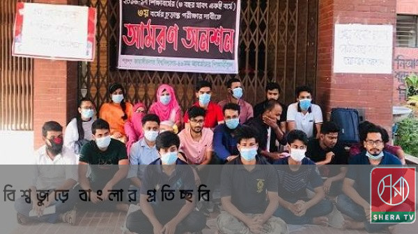 স্টাফ রিপোর্টার: বিশ্ববিদ্যালয় প্রশাসনের আশ্বাসে ৩য় বর্ষের চূড়ান্ত পরীক্ষার দাবিতে আমরন অনশন কর্মসুচি তুলে নিয়েছে জাহাঙ্গীরনগর বিশ্ববিদ্যালয়ের ৪৬তম আবর্তনের আন্দোলনকারি শিক্ষার্থীরা। রবিবার রাত ১২টার দিকে বিশ্ববিদ্যালয় প্রশাসনের সাথে বৈঠক শেষে